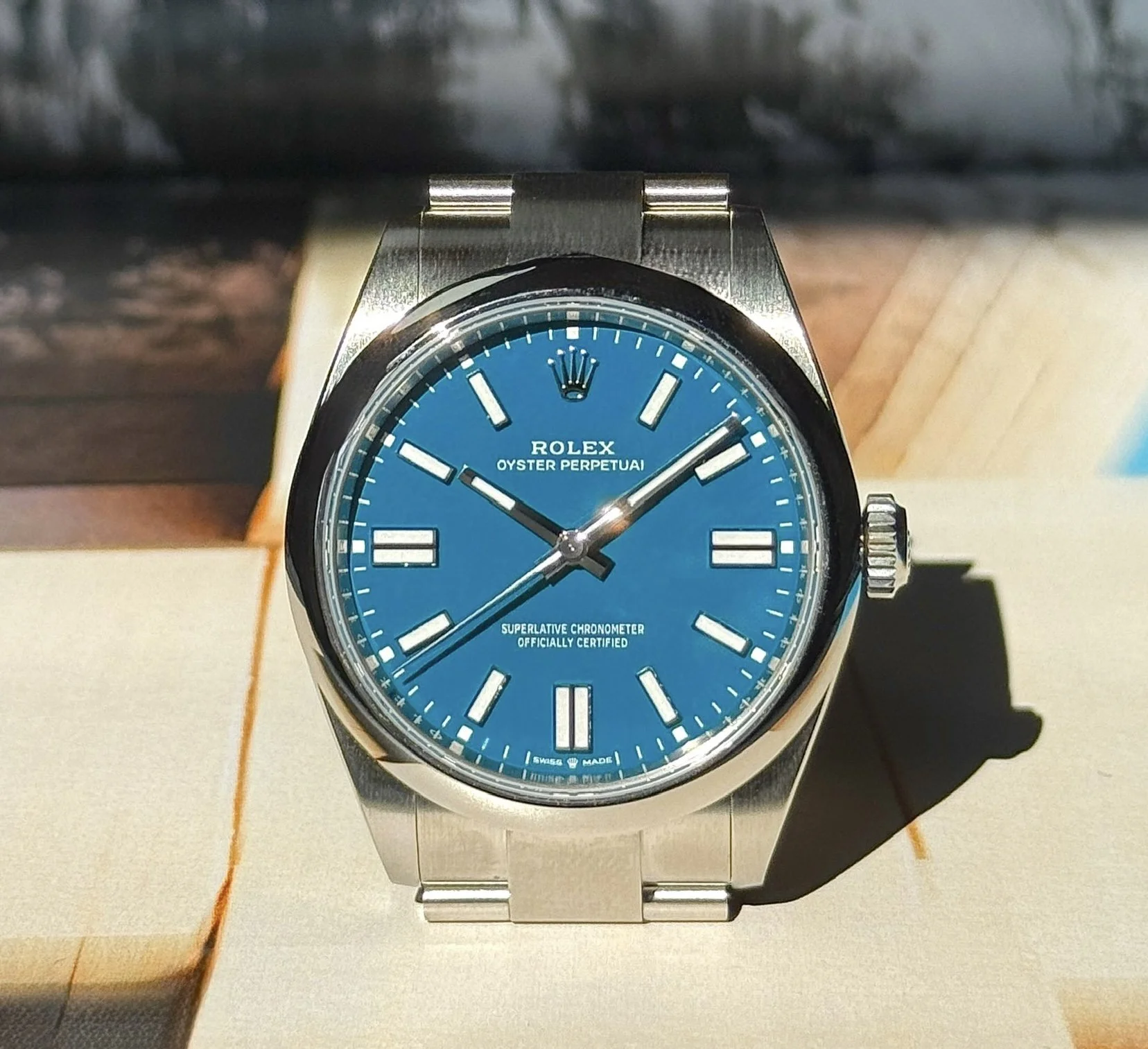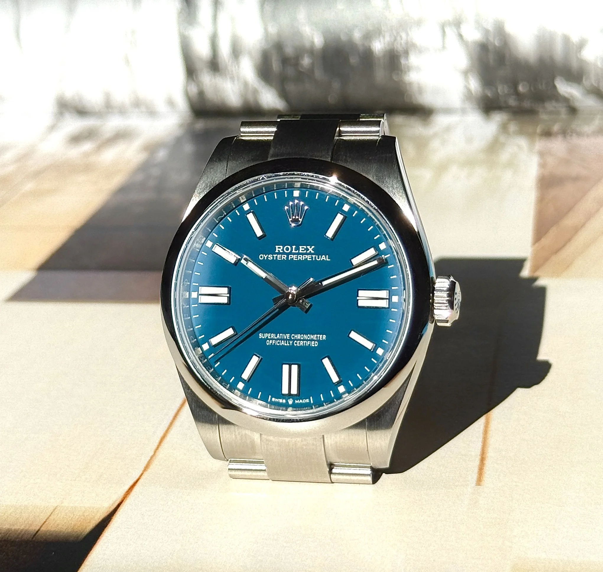 The 134300 OP 41mm with the new Med Blue dial is amazing in person. OP’s are always very popular and great value. They always deliver and this new colour is brilliant