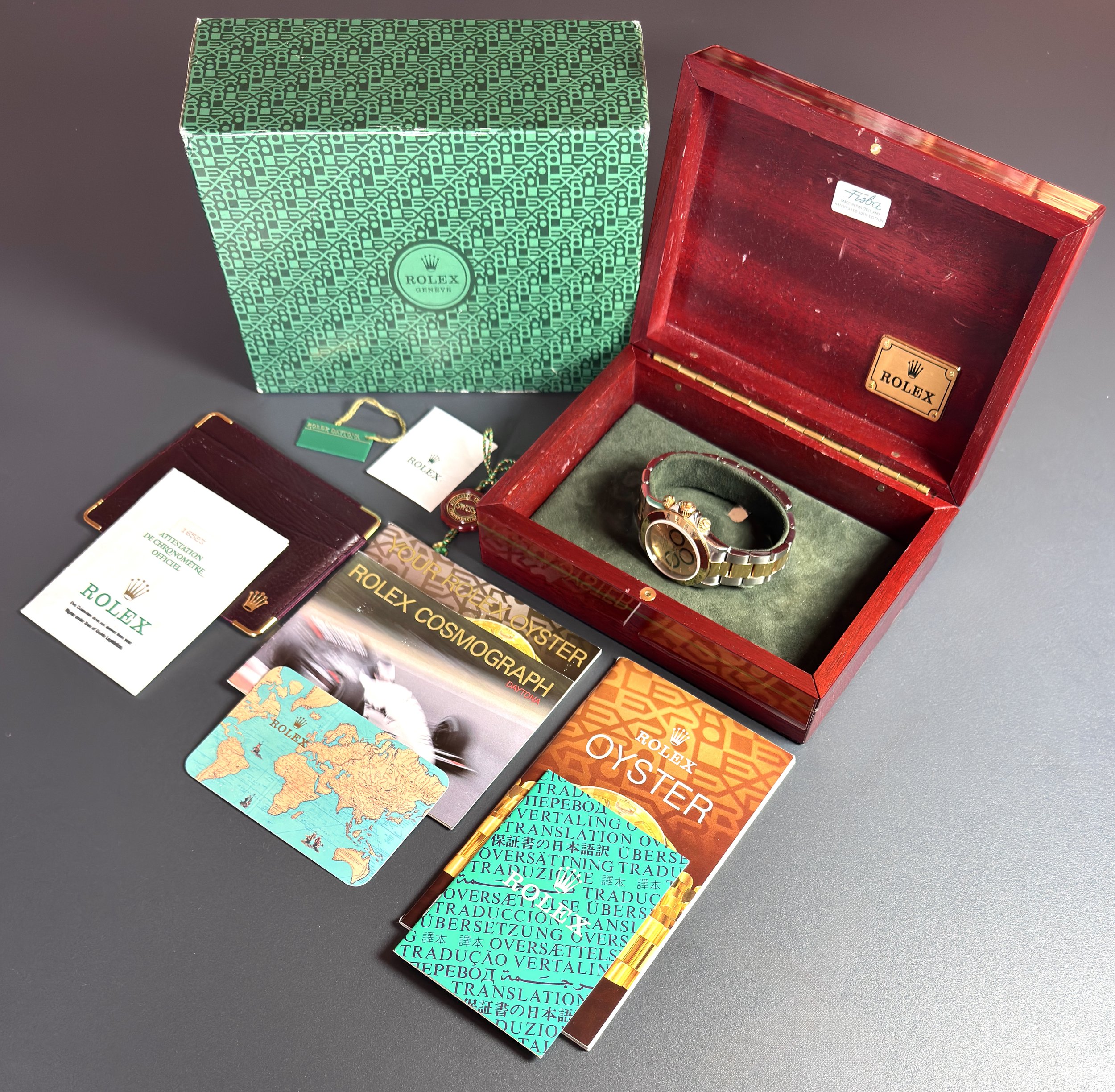 Set: Rolex box - Instruction booklets - Red swing tag and stickers green tag - International Rolex warranty - Rolex calendar card and wallet - Rolex catalogue with price list.