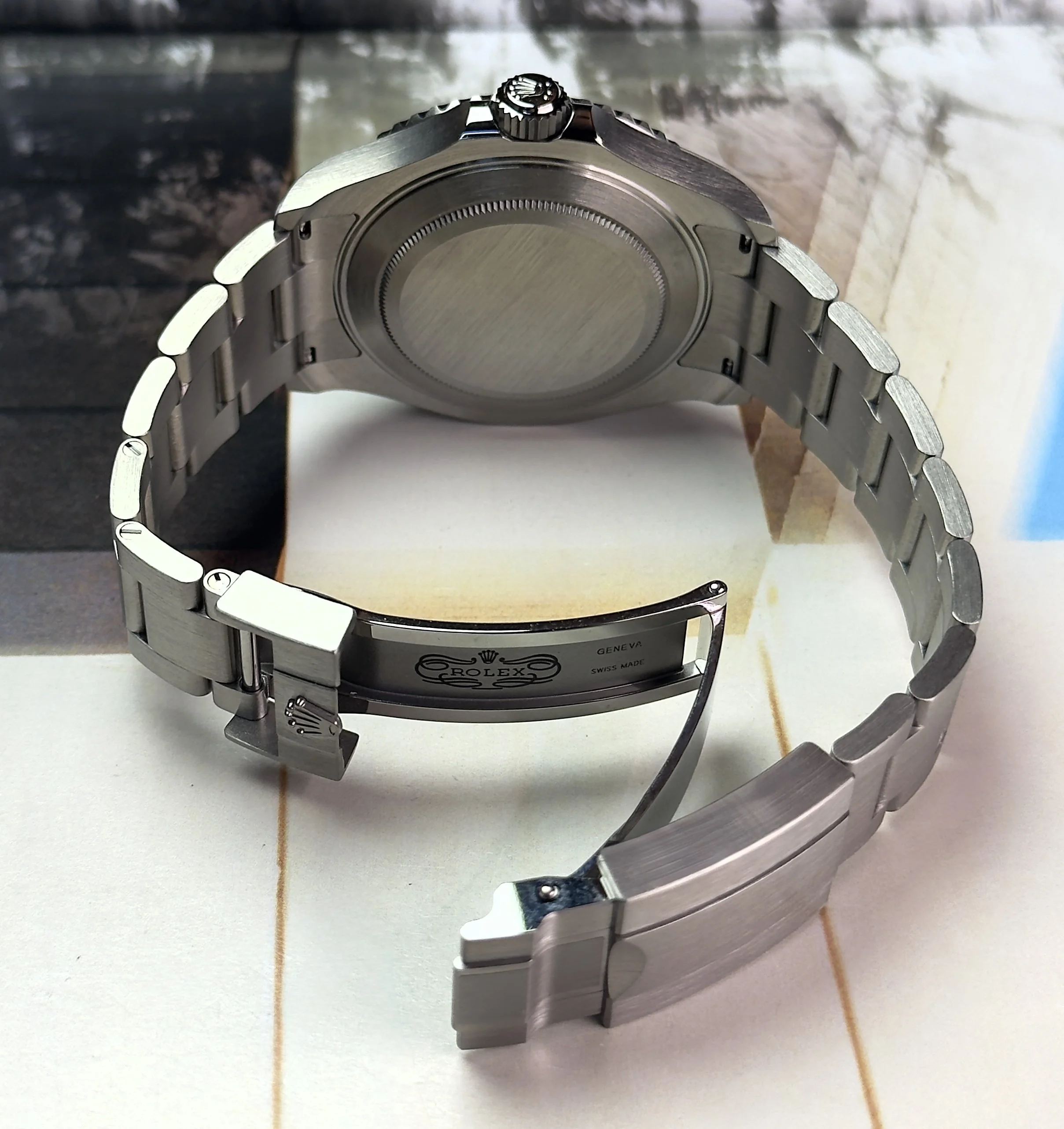 Fantastic condition, brand new & unworn with sharp edges and crisp finish. Brushed titanium oyster bracelet and super light weight.
