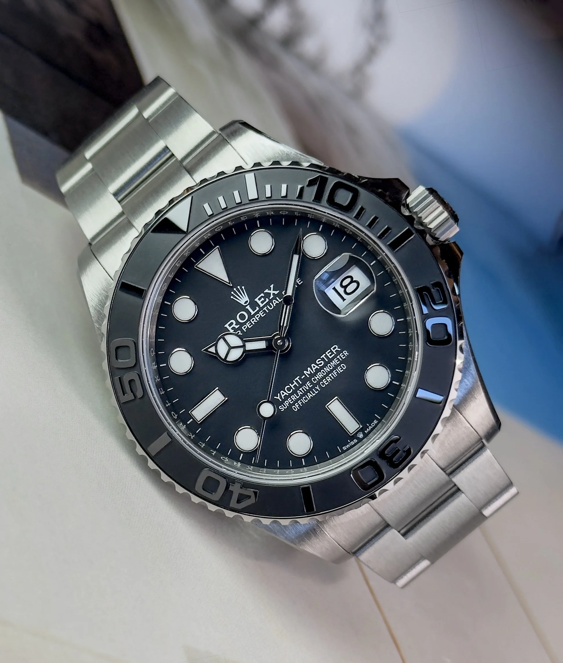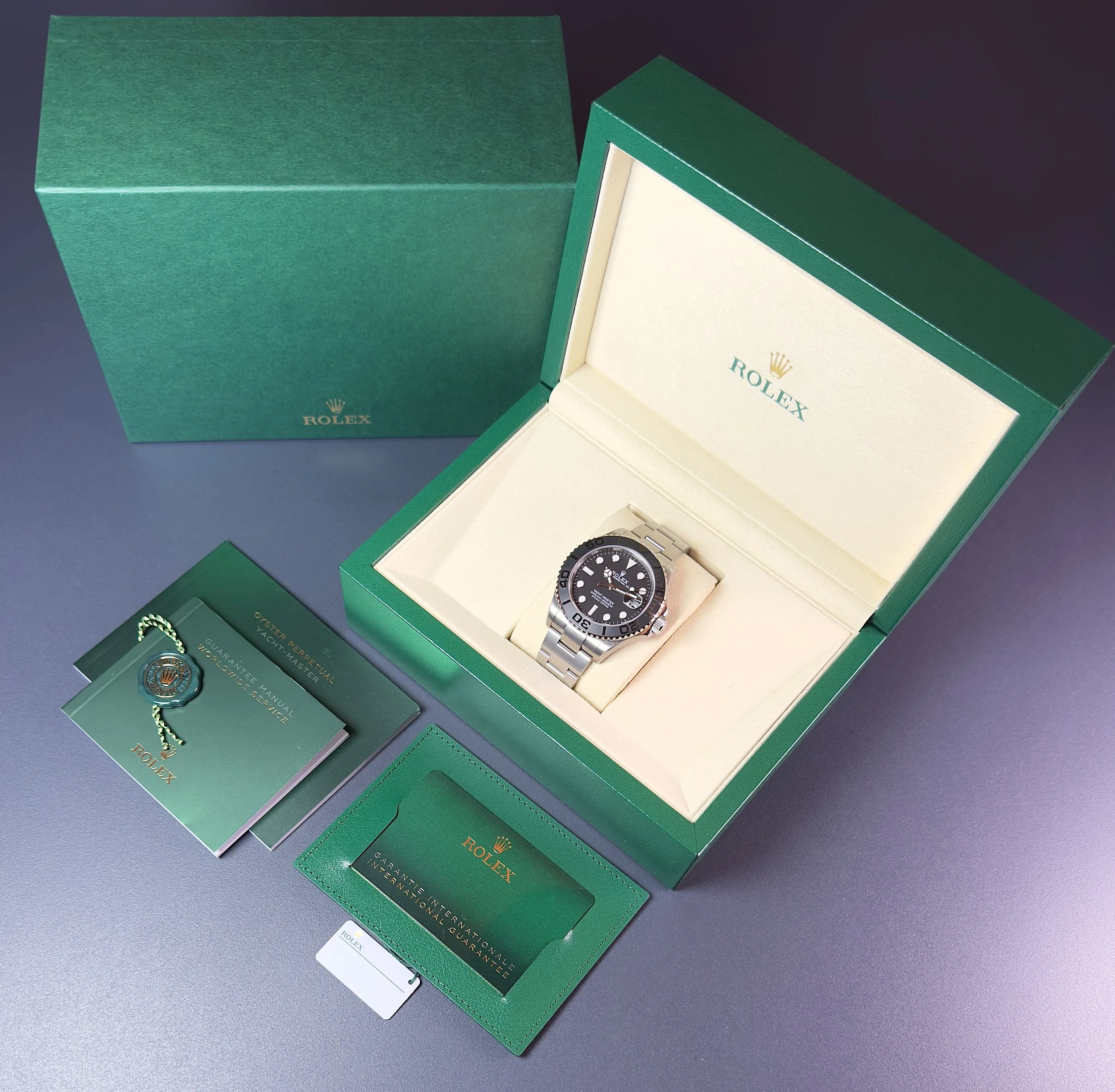 In brand new and unworn condition, this 2025 Yacht-Master titanium is complete and a full set fresh from the AD. A very rare watch, very few around and almost impossible to get from the AD, these watches are very sought after and its easy to see why. Amazing piece.